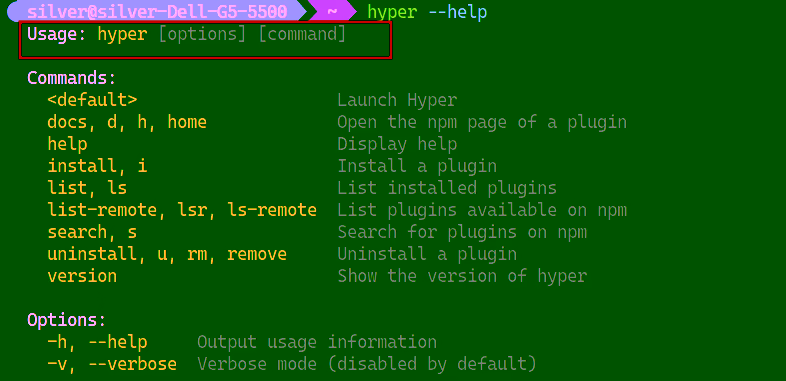 不过,对于我想要使用的 Hyper 终端,就不需要在命令前增加额外的命令行选项。