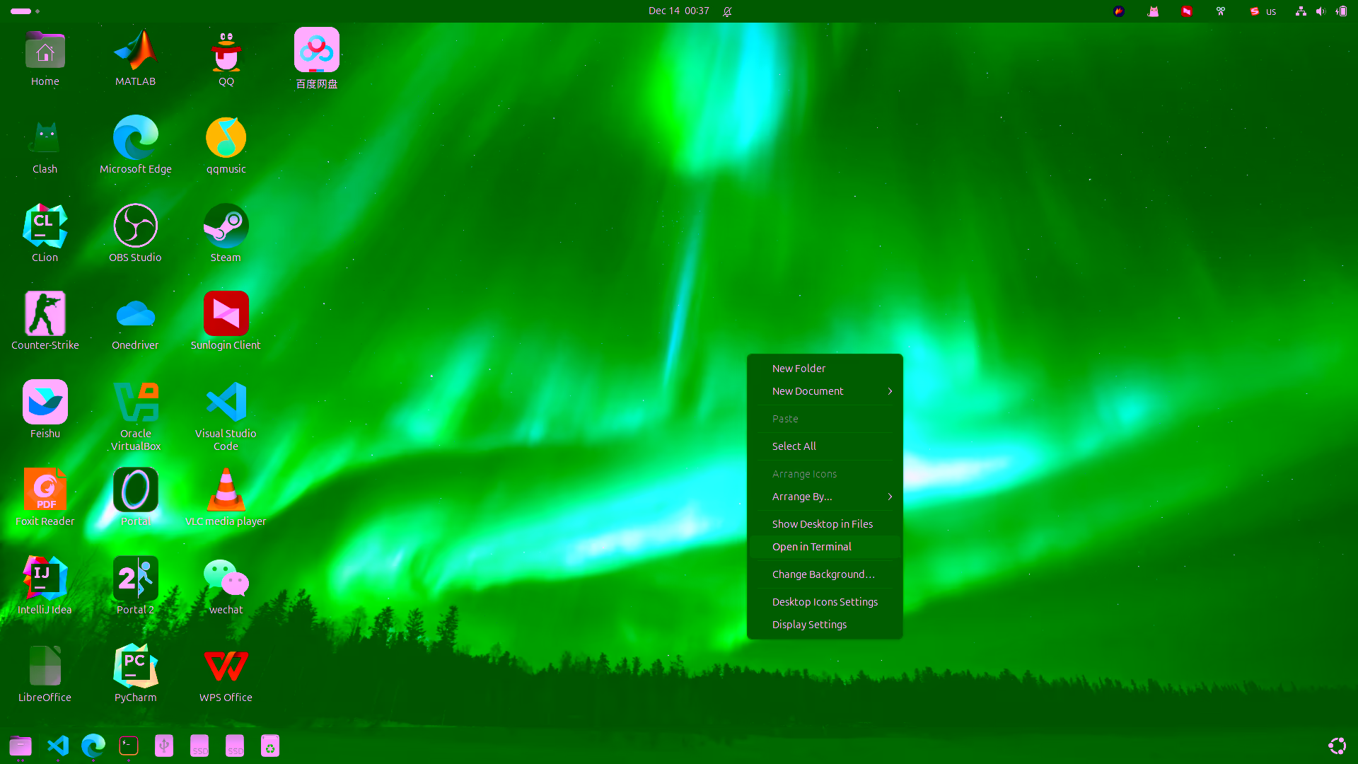 GNOME 桌面提供了一项非常有用的功能:在桌面上,右键单击,点击“Open in Terminal”就可以在终端中打开指定桌面,这实际上是通过在启动终端的同时执行一条 shell 指令实现的。